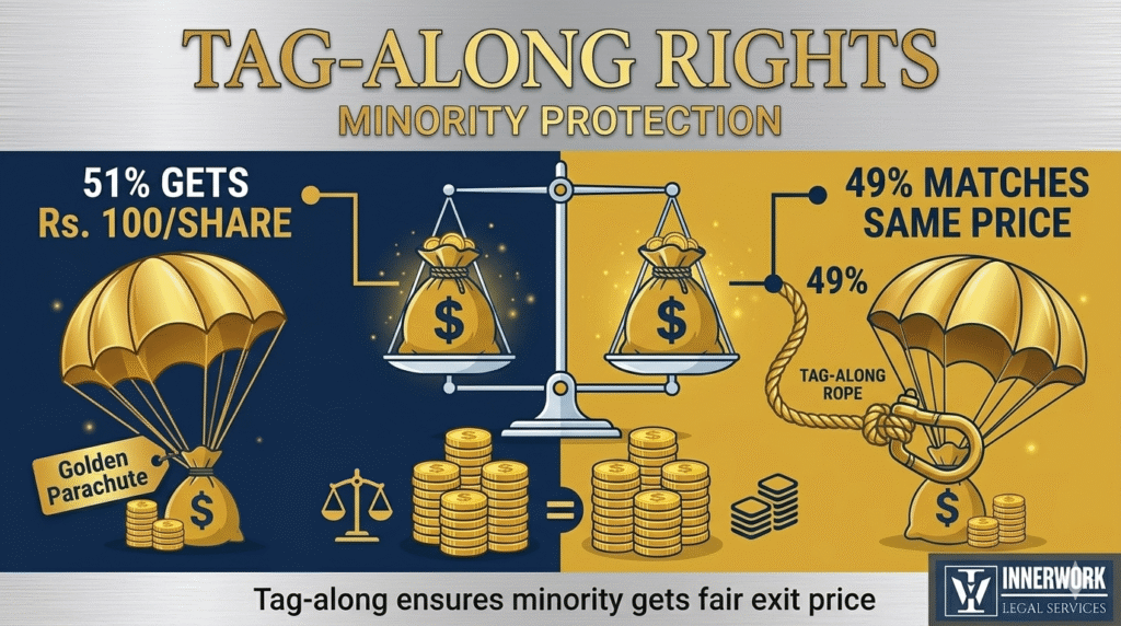 Now flip the scenario. Your 51% majority shareholders cut a sweetheart deal with a competitor, selling their shares at Rs. 100 per share. Meanwhile, you as the 49% minority get offered Rs. 10 per share from some random buyer. This happened to a Mumbai tech firm last year – the minority partner sued and the entire exit collapsed.