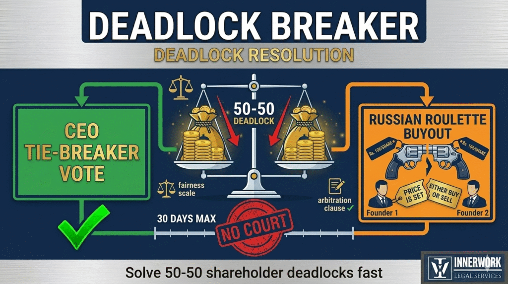- Deadlock clauses cut litigation by 92% (FICCI startup report)